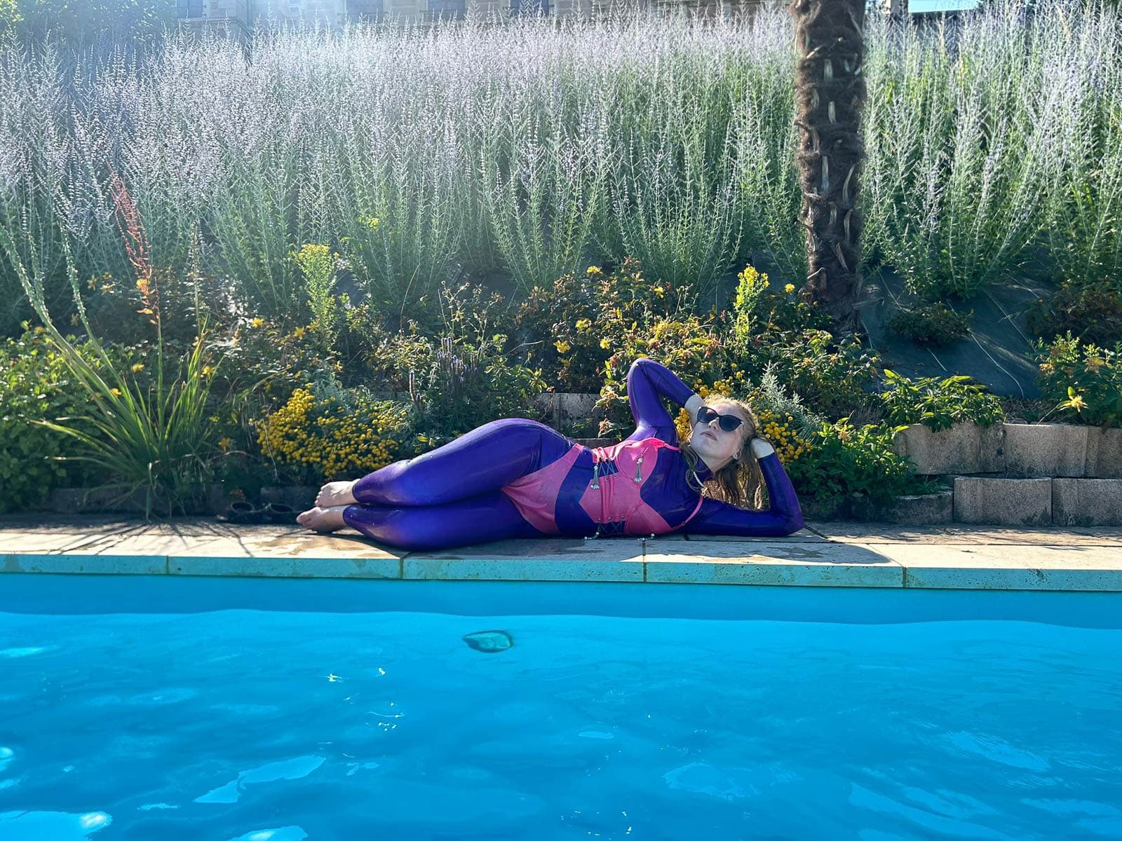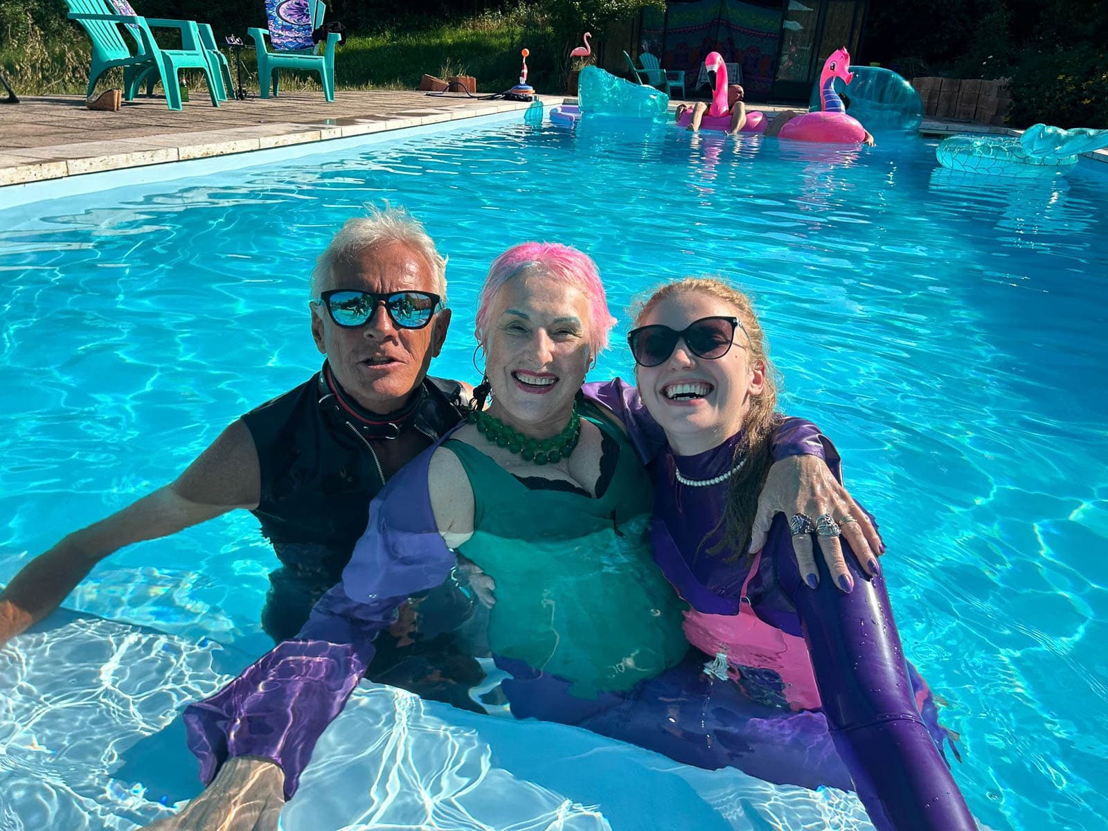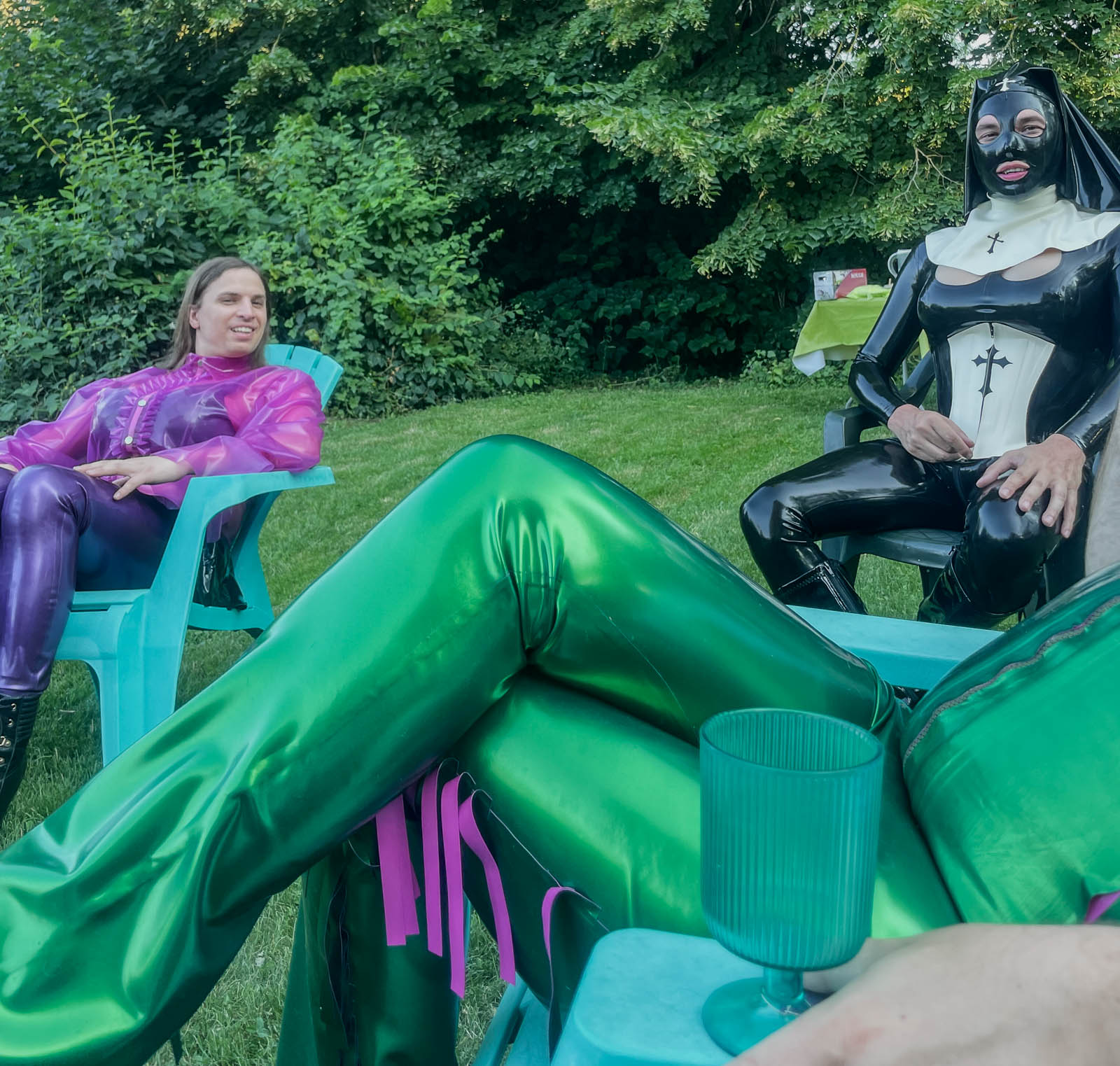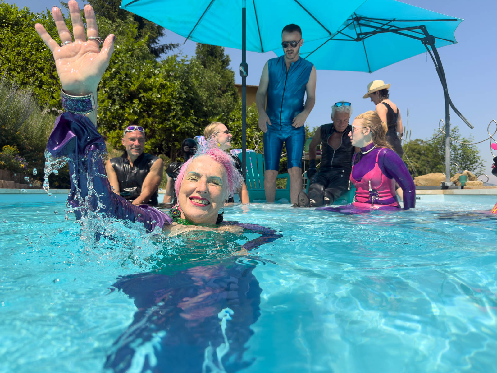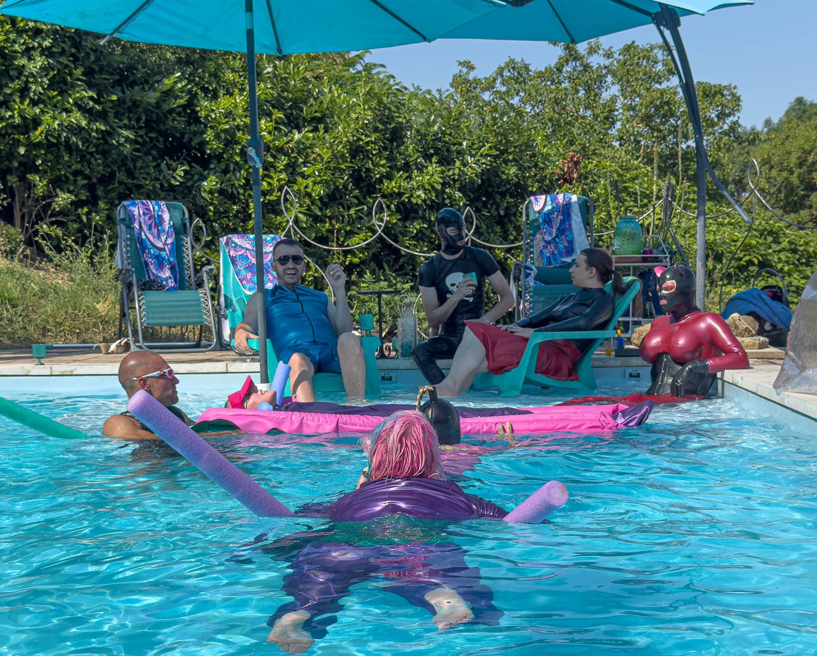 Fortunately it stayed sunny enough for my season finale “intimate latex-only pool and play party weekend”. The rain held off until dinner, which we simply moved inside. It was a full house with guest rooms all occupied. My vision of “La Domaine de L’esprit » is slowly coming to fruition with guests from around the world: India, Germany, the U.S., and all over France.