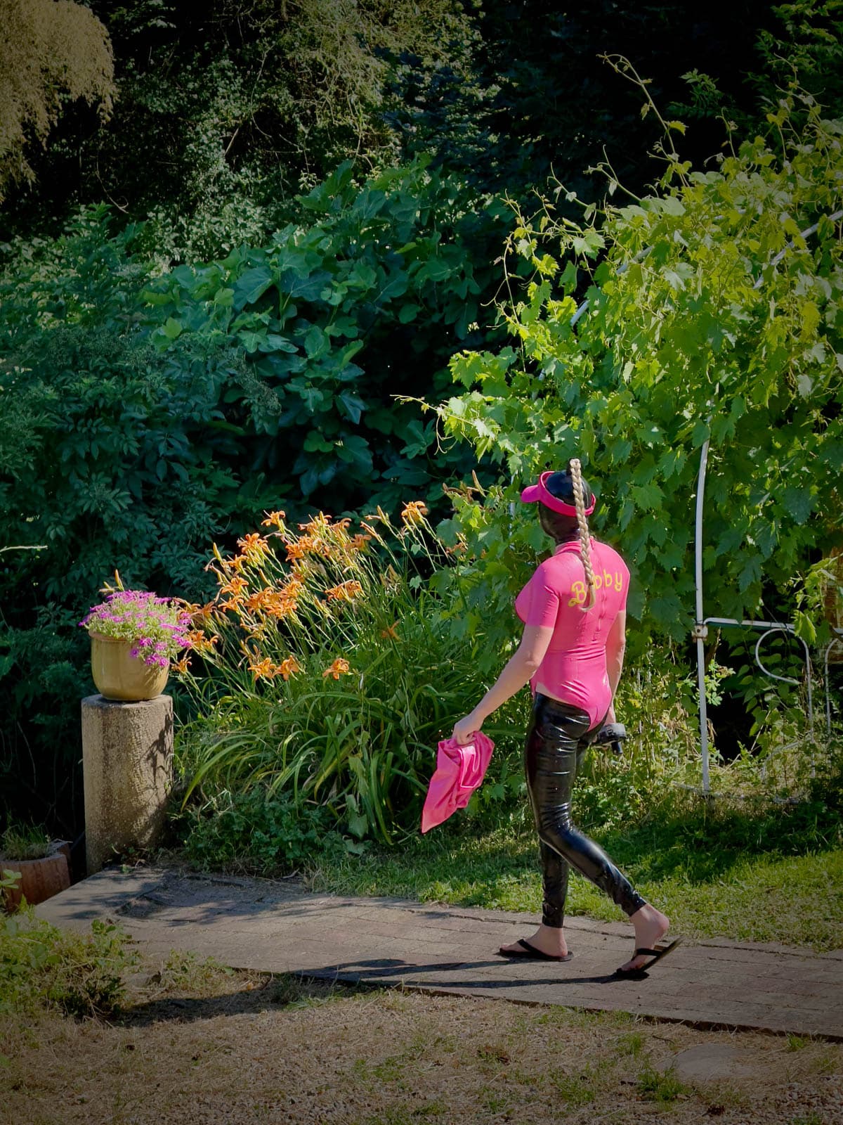 Heureusement, le soleil est resté suffisamment présent pour que je puisse organiser mon dernier week-end de fête intime en latex à la piscine et à la salle de jeux. La pluie s’est maintenue jusqu’au dîner, que nous avons simplement déplacé à l’intérieur. Les chambres d’hôtes étaient toutes occupées. Ma vision du « Domaine de l’esprit » se concrétise lentement avec des invités du monde entier : Inde, Allemagne, États-Unis et toute la France.