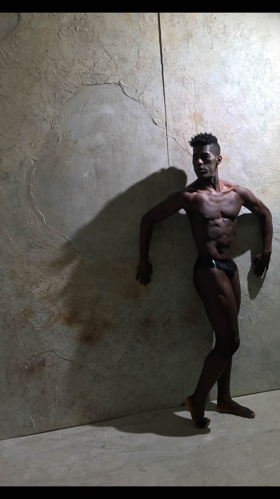 Lloyd Knight wearing The Baroness’ latex mens’ briefs and our newest hip cage (of which we have a limited supply and are available while they last from the boutique and online) in a shoot by @Mark_Shaw