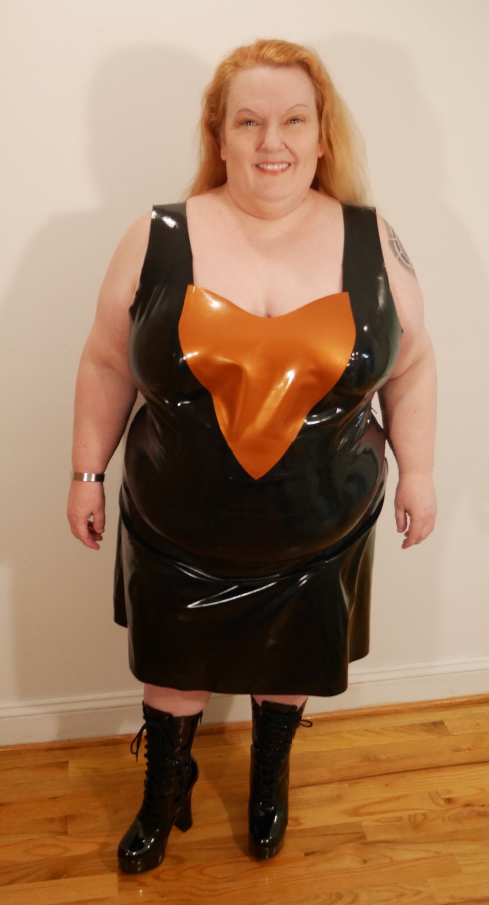 From the length to the really flattering copper piece on the top, you created something that well, as you probably hear often, made me feel ‘more me.’ That’s no small feat, in that fetish items often leave me feeling more disconnected from my body rather than embracing it.