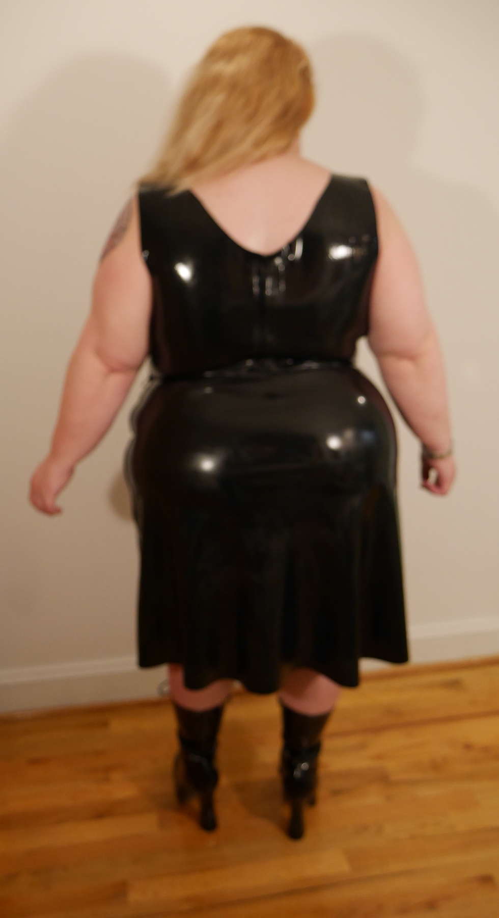 I’m very pleased with the outfit, and so happy to have it in my colors! The waist hit at exactly the right point and the the latex itself feels (and of course smells) fantastic. The cut on the skirt for example, moves really well and comes in at the small of my back perfectly.